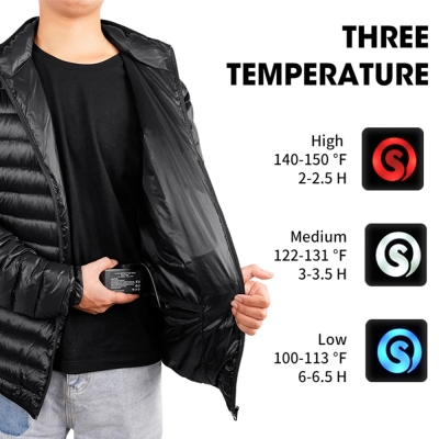 Men's Heating Down Jacket Winter Warm Naturehike Thick Coat Woman Heated Puffer Jacket With Battery Camping Hiking Solid Black
