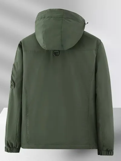 Men's Plus Size Multi-Pocket Hooded Outdoor Jacket